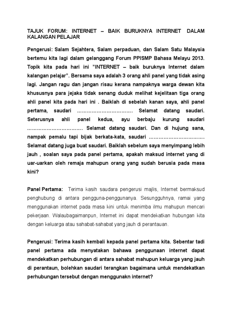 . Web SKRIP FORUM LGBT Moderator. Teks Forum Bahasa Melayu 34wmo5j35wl7. Web Contoh Teks Forum Remaja PENDISIPLINAN PELAJAR.